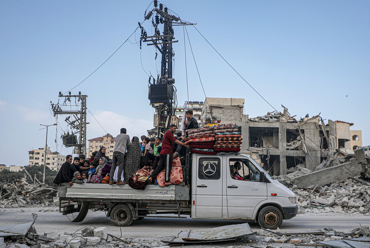 epa10954336 Residents evacuate from Gaza City and the northern Gaza Strip, in Gaza, 02 November 2023. More than 8,500 Palestinians and at least 1,400 Israelis have been killed, according to the Israeli Defense Forces (IDF) and the Palestinian health authority, since Hamas militants launched an attack against Israel from the Gaza Strip on 07 October, and the Israeli operations in Gaza and the West Bank which followed it. According to the United Nations Relief and Works Agency for Palestine Refugees in the Near East (UNRWA), a 'massive displacement of people' from the north of the Gaza Strip southward has placed 'enormous pressure on those communities'. The IDF had issued a military advisory warning the civilian population of north Gaza and Gaza city to move to areas south of Wadi Gaza as it expands 'ground operations' in the enclave. EPA/MOHAMMED SABER