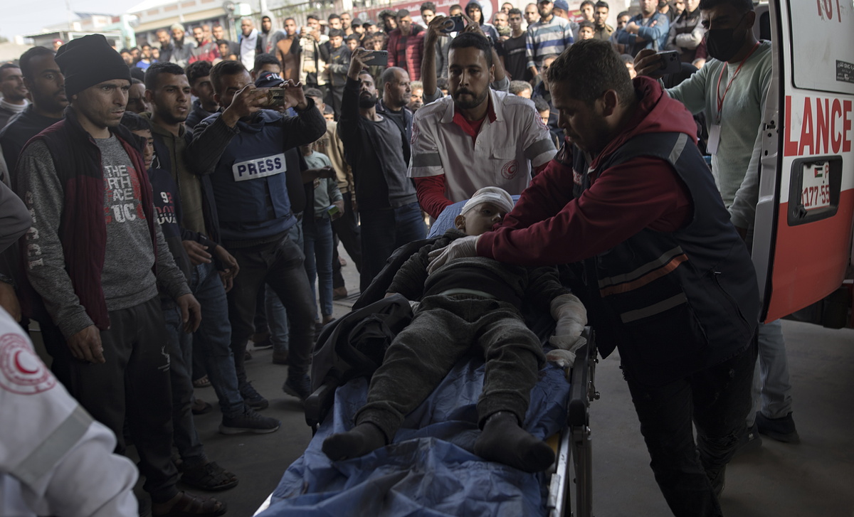 epa11045727 A medic tries to revive an injured child being brought at the Nasser Hospital in Khan Yunis, at Nasser Hospital in Khan Yunis, southern Gaza Strip, 27 December 2023, following Israeli air strikes on the Southern Gaza Strip. Israeli forces resumed military strikes on Gaza after the week-long truce ended on 01 December. More than 20,800 Palestinians and at least 1,300 Israelis have been killed, according to the Palestinian Health Ministry and the Israel Defense Forces (IDF), since Hamas militants launched an attack against Israel from the Gaza Strip on 07 October, and the Israeli operations in Gaza and the West Bank which followed it. EPA/HAITHAM IMAD