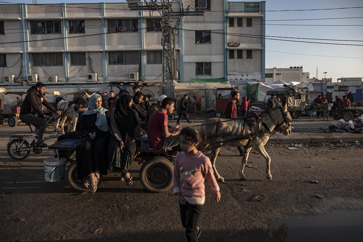 epa10980348 Displaced Palestinians travel around in Khan Yunis refugee camp, southern Gaza Strip, November 17, 2023. More than 11,000 Palestinians and at least 1,200 Israelis have been killed, according to the Israel Defense Forces (IDF) and the Palestinian health authority, since Hamas militants launched an attack against Israel from the Gaza Strip on 07 October, and the Israeli operations in Gaza and the West Bank which followed it. EPA/HAITHAM IMAD EPA-EFE/HAITHAM IMAD