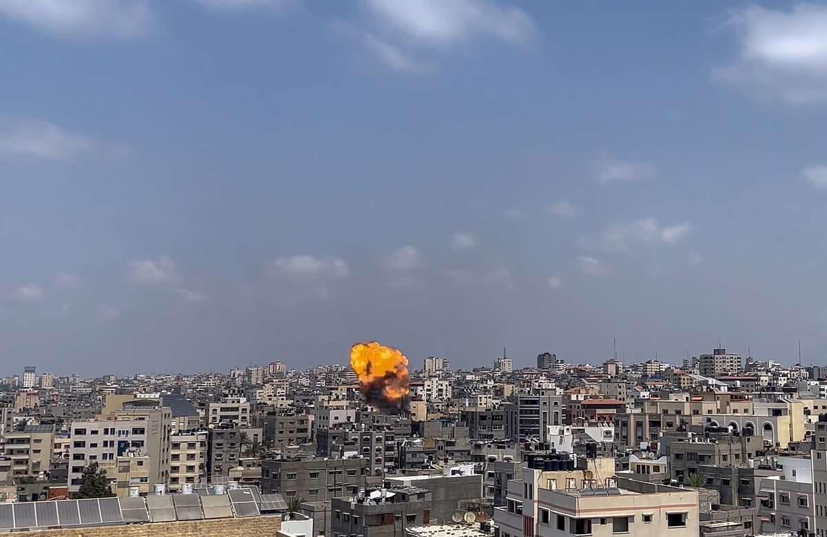 epa10108427 Smoke rises after an Israeli airstrike in Gaza City on, 06 August 2022. According to the Palestinian ministry of health, at least 10 people were killed, including a child, in a series of Israeli airstrikes on multiple targets in Gaza Strip including a residential apartment in neighborhood of Al-Rimal. Al-Quds Brigades, the armed wing of the Palestinian Islamic Jihad, announced that senior leader Tayseer al-Jabari was killed in the attacks. EPA/MOHAMMED SABER