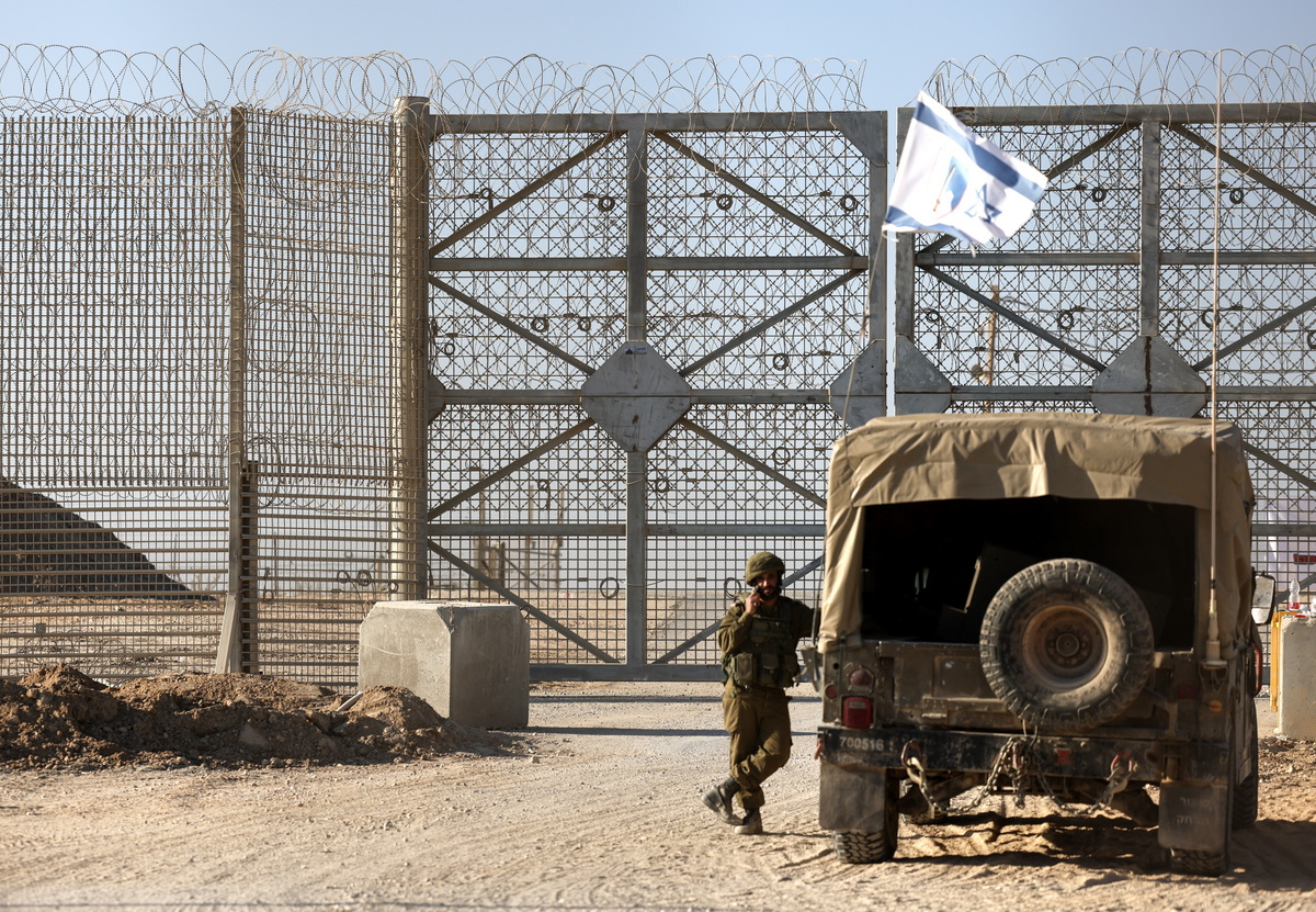 epaselect epa11714214 An Israeli soldier stands guard beside the border gate of the Erez crossing, on the border with northern Gaza Strip, in southern Israel, 11 November 2024. According to the Israeli Army (Tsahal) and Coordination of Government Activities in the Territories (COGAT), 40 World Food Programme (WFP) aid trucks crossed into the northern Gaza Strip from Israel. According to the United Nations over 1.8 million people in Gaza face extreme hunger. EPA/VASSIL DONEV