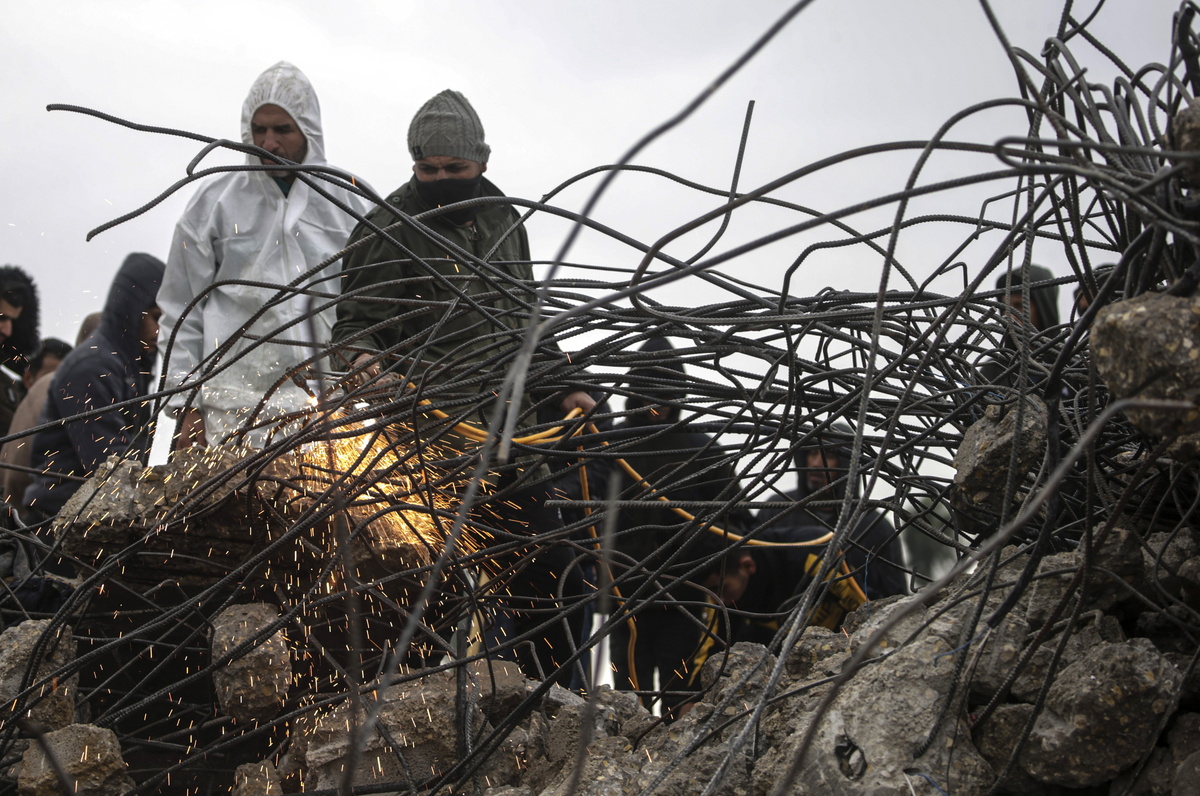 epa11112084 Palestinians search for bodies and survivors among the rubble of a destroyed house following Israeli airstrikes in Deir Al Balah, Gaza Strip, 29 January 2024. More than 26,200 Palestinians and at least 1,330 Israelis have been killed, according to the Palestinian Health Ministry and the Israel Defense Forces (IDF), since Hamas militants launched an attack against Israel from the Gaza Strip on 07 October 2023, and the Israeli operations in Gaza and the West Bank which followed it. EPA/MOHAMMED SABER