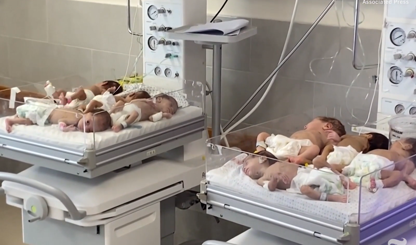 Τα νεογέννητα απομακρύνθηκαν χθες από το νοσοκομείο αλ Σίφα στη Γάζα, όπου αρκετά άλλα μωρά έχασαν τη ζωή τους εν μέσω κατάρρευσης των ιατρικών υπηρεσιών, εν μέρει εξαιτίας των διακοπών στη ηλεκτροδότηση όταν εξαντλήθηκαν τα καύσιμα.