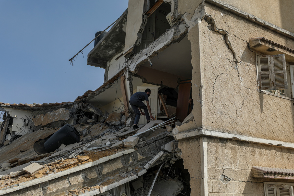 epa10964117 A Palestinian man inspects a destroyed house following Israeli airstrikes on the Al Shejaeiya neighbourhood, eastern Gaza City, 08 November 2023. The Israel Defence Forces (IDF) said on 08 November that their troops continue to operate inside the Gaza Strip, directing aircraft strikes on Hamas infrastructures. More than 10,000 Palestinians and at least 1,400 Israelis have been killed, according to the Israel Defense Forces (IDF) and the Palestinian health authority, since Hamas militants launched an attack against Israel from the Gaza Strip on 07 October, and the Israeli operations in Gaza and the West Bank which followed it. EPA/MOHAMMED SABER EPA-EFE/MOHAMMED SABER