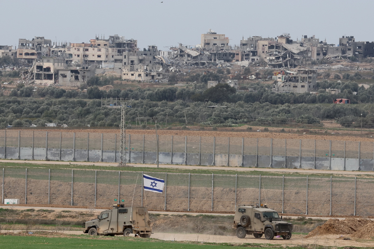 epa11039691 Israeli army jeeps patrol near Shujayya neighborhood in the Gaza Strip, as seen from southern Israel, 21 December 2023. More than 19,600 Palestinians and at least 1,200 Israelis have been killed, according to the Palestinian Health Ministry and the Israel Defense Forces (IDF), since Hamas militants launched an attack against Israel from the Gaza Strip on 07 October, and the Israeli operations in Gaza and the West Bank which followed it. EPA/ABIR SULTAN