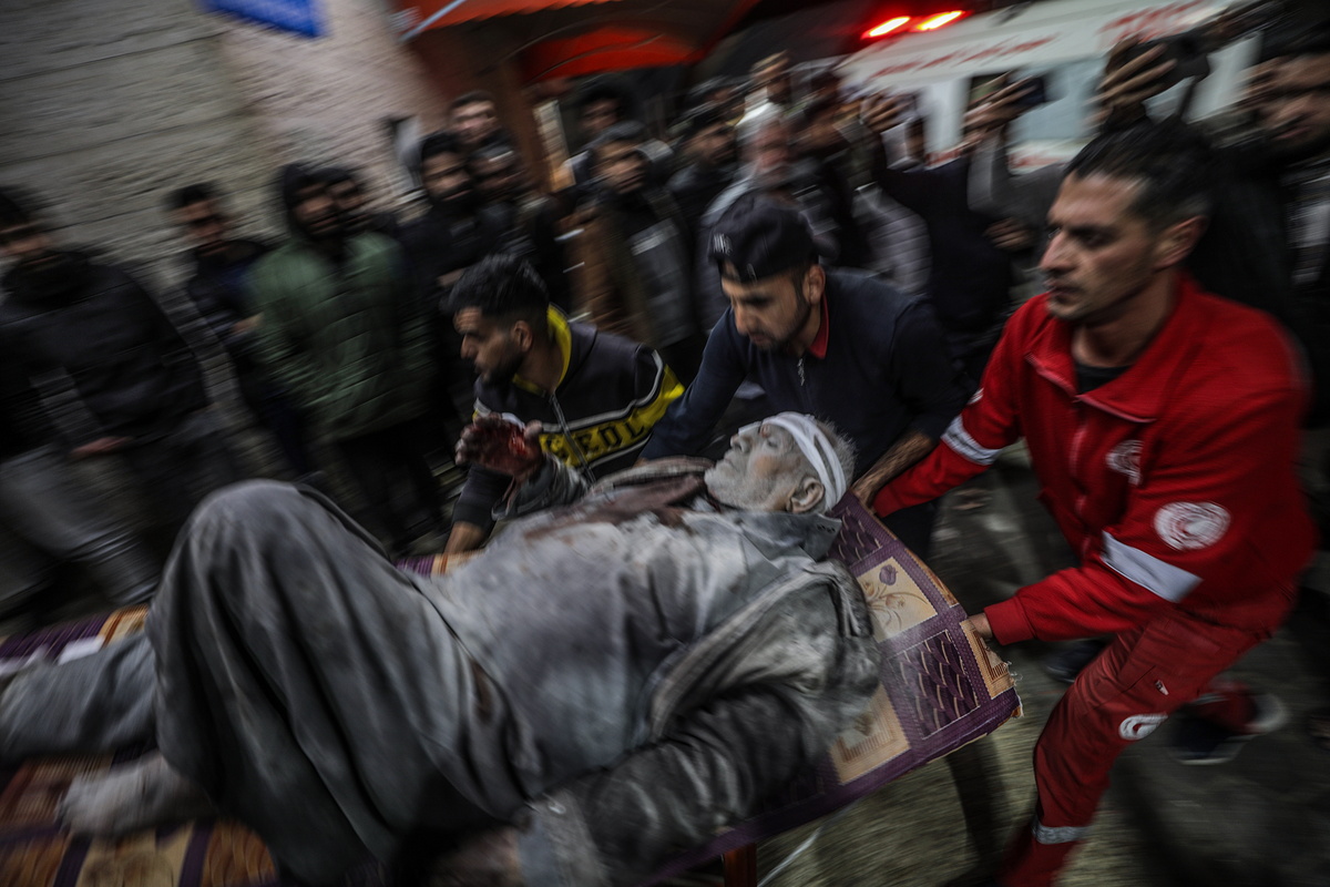 epa11813687 A wounded Palestinian elderly man is taken to Al Aqsa Martyrs Hospital in Deir Al Balah, central Gaza Strip, 08 January 2025. According to the Palestinian Ministry of Health in Gaza, at least five Palestinians were killed and more than 12 others injured after an Israeli airstrike hit Deir Al Balah refugee camp in central Gaza. More than 45,800 Palestinians and over 1,400 Israelis have been killed, according to the Palestinian Health Ministry and the Israeli Army, since Hamas militants launched an attack against Israel from the Gaza Strip on 07 October 2023, and the Israeli operations in Gaza and the West Bank which followed it. EPA/MOHAMMED SABER