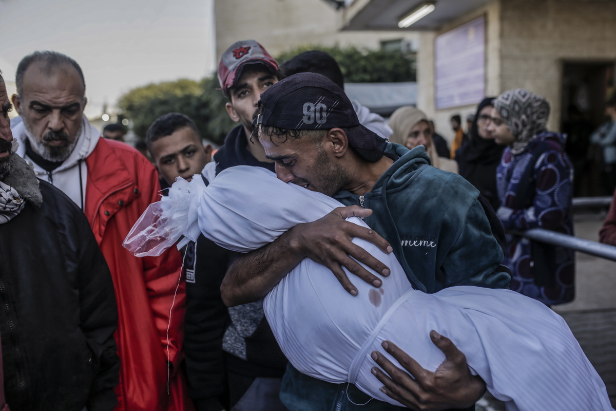 epaselect epa11766439 Mohammed Abu Saied mourns as he carries the body of his four-year-old daughter Sila, at the Al-Aqsa Martyrs hospital in Deir Al Balah, central Gaza Strip, 09 December 2024. According to the Palestinian Ministry of Health in Gaza, the four kids were killed in an Israeli airstrike in the Al Maghazi refugee camp in the central Gaza Strip. More than 45,000 Palestinians and over 1,400 Israelis have been killed, according to the Palestinian Health Ministry and the Israeli Army, since Hamas militants launched an attack against Israel from the Gaza Strip on 07 October 2023 and the Israeli operations in Gaza and the West Bank that followed it. EPA/MOHAMMED SABER