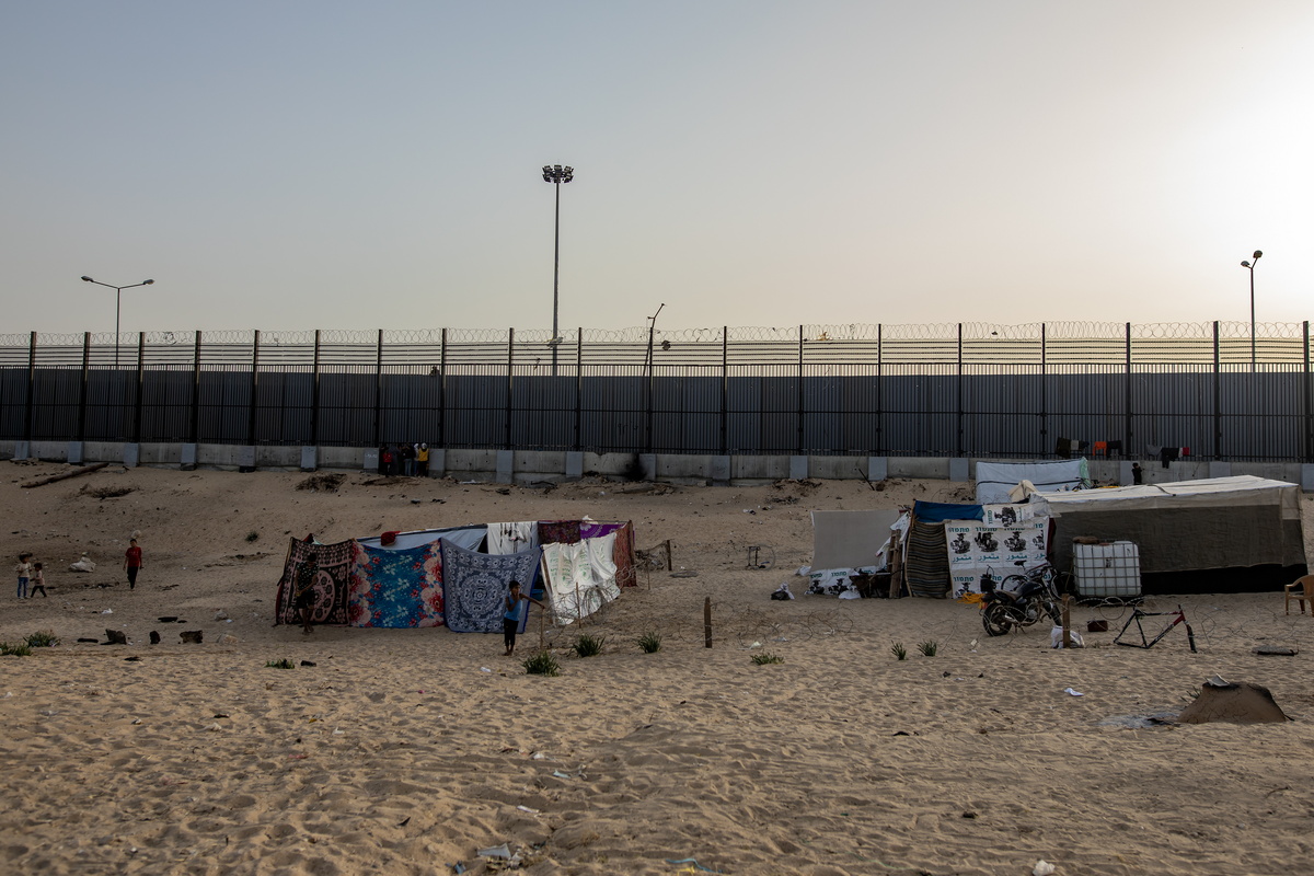 epa11290533 Internally displaced Palestinians, who fled their homes due to the Israel-Hamas conflict, take shelter near the border with Egypt, in Rafah, southern Gaza Strip, 20 April 2024. Since 07 October 2023, up to 1.7 million people, or more than 75 percent of the population, have been displaced throughout the Gaza Strip, some more than once, in search of safety, according to the United Nations Relief and Works Agency for Palestine Refugees in the Near East (UNRWA), which added that the Palestinian enclave is 'on the brink of famine', with 1.1 million people (half of its population) 'experiencing catastrophic food insecurity' due to the conflict and restrictions on humanitarian access. EPA/HAITHAM IMAD
