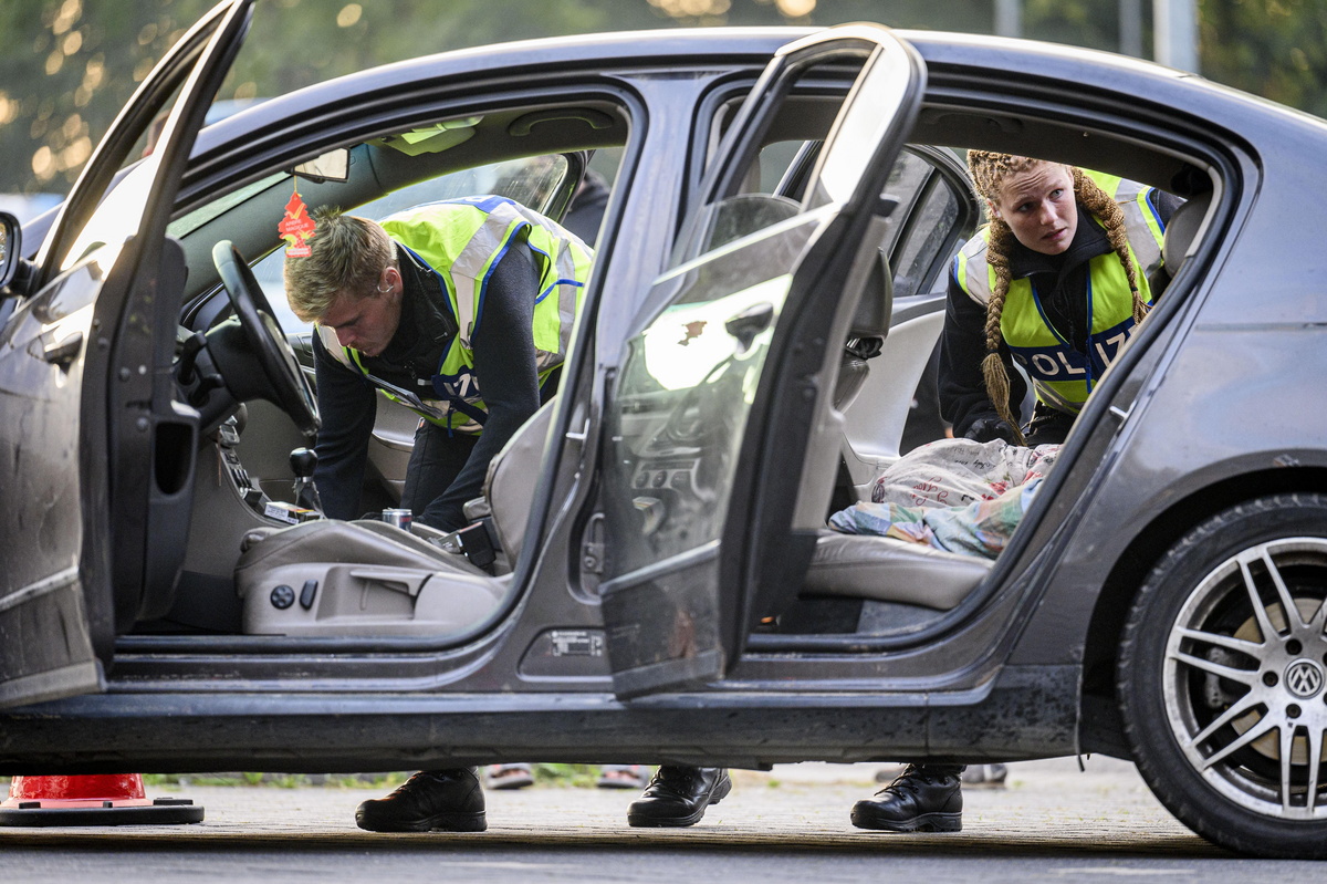 epa11607533 German Federal Police carry out checks on the A1/A30 at the border in De Lutte, The Netherlands, crossing with Germany, 16 September 2024. Germany began controls along all land borders on September 16 in order to limit the entry of illegal migrants and protect against Islamist extremist terrorism, according to the German Interior Ministry. EPA/Emiel Muijderman