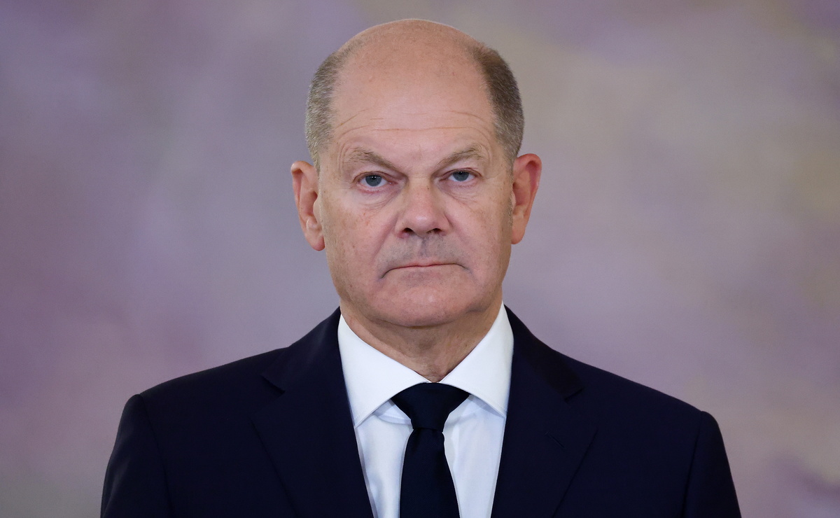 epa11707339 German Chancellor Olaf Scholz looks on at Bellevue Palace in Berlin, Germany, 07 November 2024. In accordance with Article 64, para. 1, sentence 1 of the Basic Law, German President Steinmeier, at the suggestion of the German Chancellor Olaf Scholz, hands over the dismissal certificates from their office to the Federal Minister of Finance Christian Lindner, the Federal Minister of Justice Marco Buschmann and the Federal Minister of Education and Research Bettina Stark-Watzinger, and appoints a new Federal Minister of Finance. EPA/FILIP SINGER