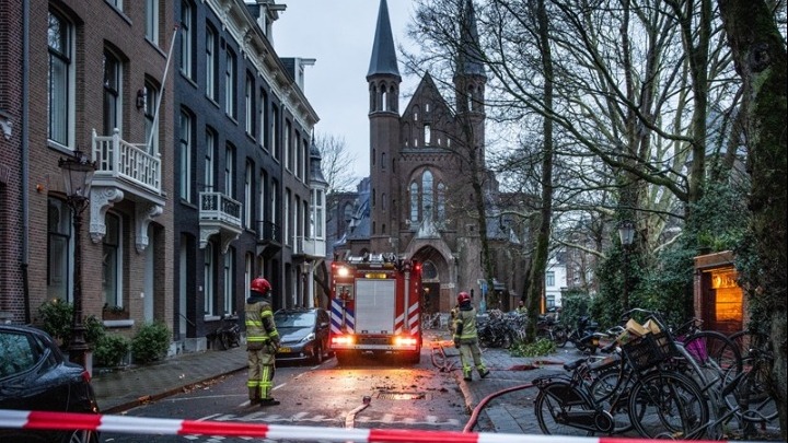 Ο πύργος ύψους 50 μέτρων κατέρρευσε και η στέγη υπέστη σοβαρές ζημιές, σύμφωνα με τις αρχές του Άμστερνταμ.