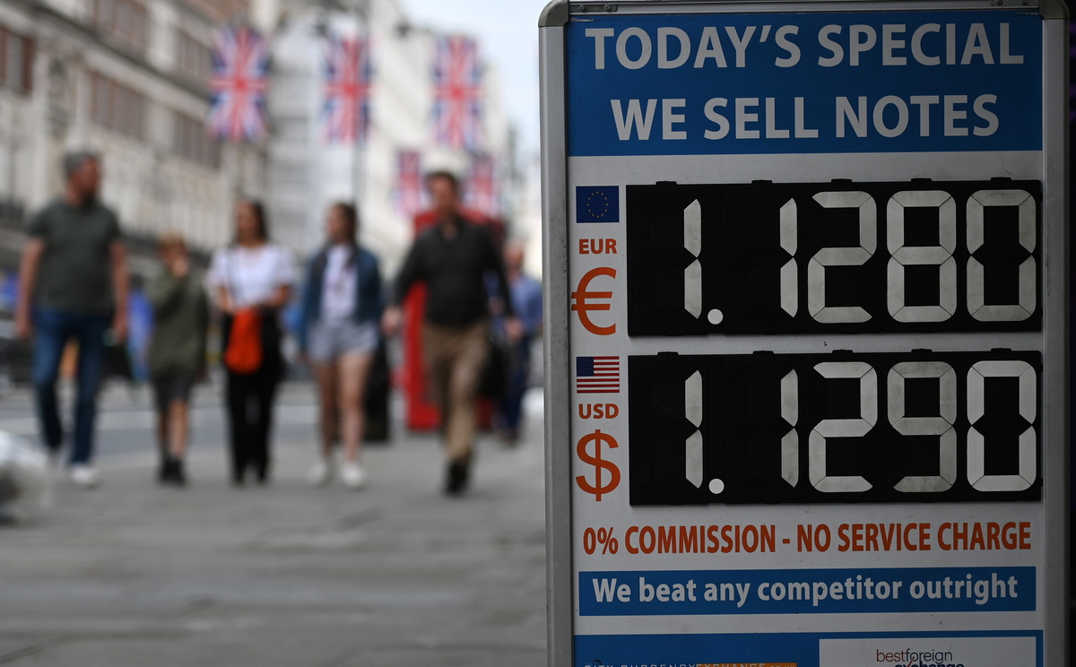 epa10152005 Pedestrians pass a currency exchange in London, Britain, 01 September 2022. According to the International Monetary Fund (IMF), the world may be on the brink of a global recession as the world's three main economies, China, US and Europe struggle with Covid-19, war in Ukraine and the energy crisis. Britain is expected to fall into recession by the end of 2022 and will remain in recession until 2024, the Bank of England has stated. EPA/ANDY RAIN