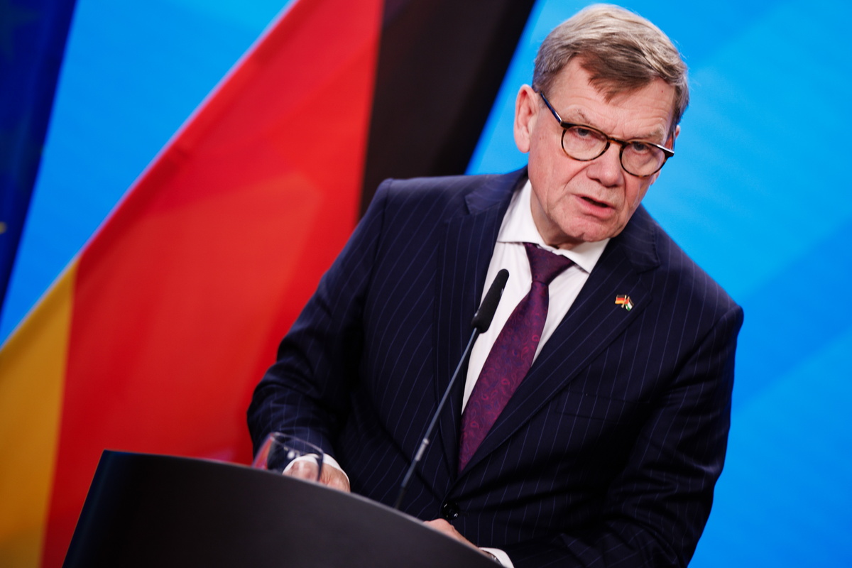 epa12547763 German Foreign Minister Johann Wadephul speaks during a press conference with his Jordanian counterpart at the German Foreign Ministry in Berlin, Germany, 25 November 2025. Jordan's foreign minister arrived in Berlin to participate in the Berlin Foreign Policy Forum, and for bilateral talks with his German counterpart. EPA/CLEMENS BILAN