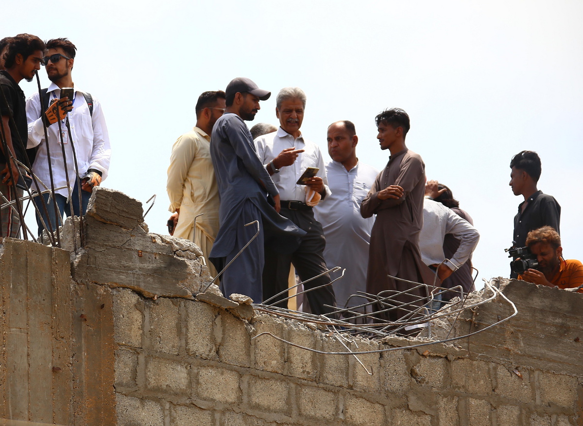 epa12083057 Pakistani security officials inspect the site of an alleged Indian drone strike in Karachi, Pakistan, 08 May 2025. The Pakistani military reported that Indian drone attacks have resulted in the death of at least one civilian and injuries to four soldiers across multiple locations in Pakistan, including Lahore and Karachi, while 12 Indian Harop drones were neutralized, amid intensified India-Pakistan tensions following an attack on a group of tourists in Pahalgam, Indian-administered Kashmir, on 22 April. EPA/REHAN KHAN