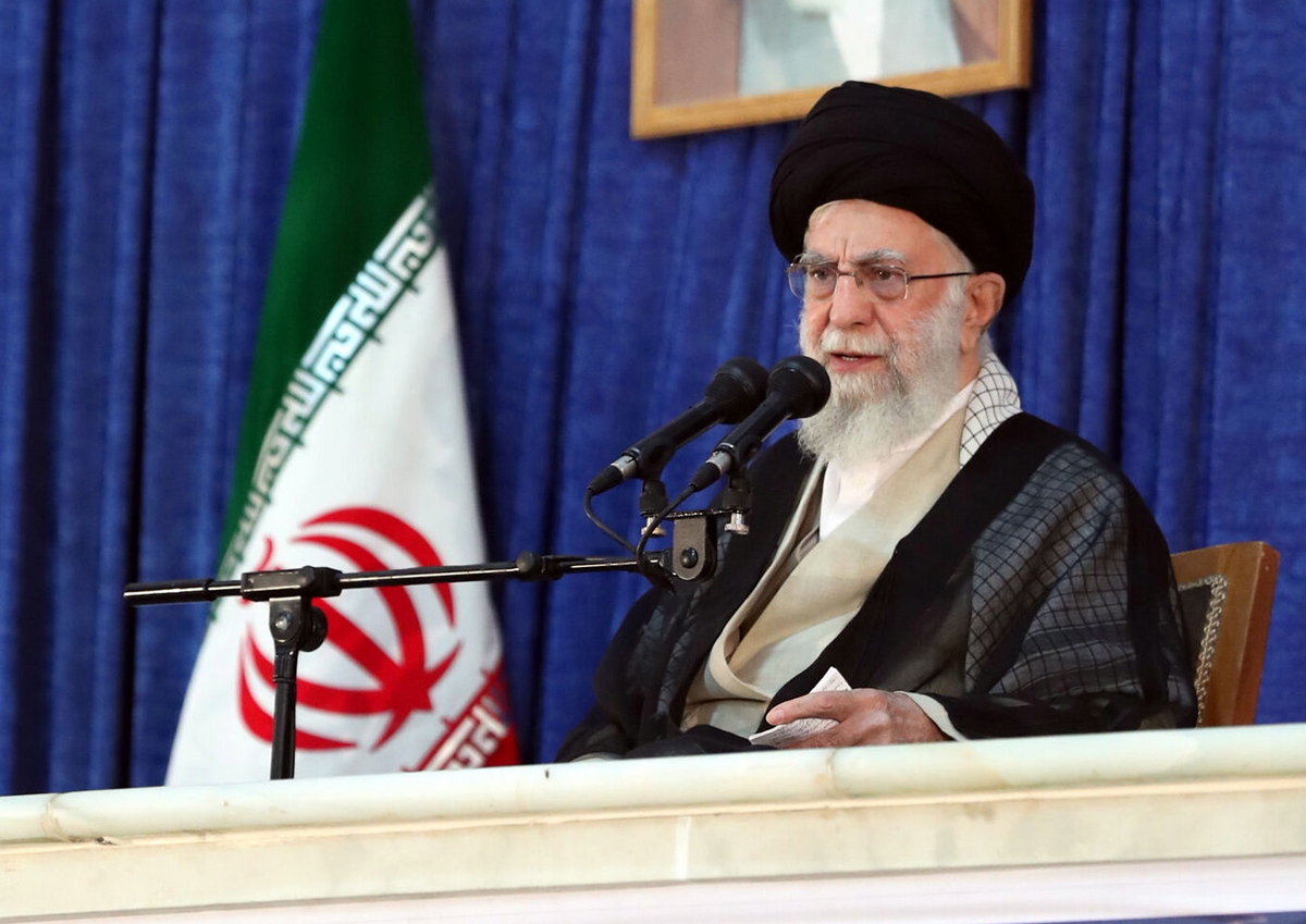 epa09995644 A handout photo made available by the Iranian Supreme Leader's office shows Iranian supreme leader Ayatollah Ali Khamenei speaks to the crowd during the 33rd death anniversary of the country's late supreme leader Ayatollah Khomeini, at the mausoleum in Tehran, Iran, 04 June 2022. Khamenei said that enemies of Iran invested to protest in Iran to damage the country, they are wrong and their calculation are wrong like always as well as the other issues against Iran. EPA/IRANIAN SUPREME LEADER'S OFFICE HANDOUT HANDOUT EDITORIAL USE ONLY/NO SALES