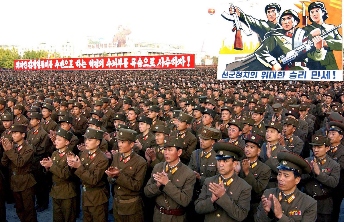epa00845422 A rally of over 100,000 attended by citizens and servicepersons of North Korea's People's Army is held to commemorate the nation's recent successful nuclear test in Pyongyang, North Korea, Friday 20 October 2006. The rally was held the same day that US Secretary of State Condoleezza Rice arrived in Beijing for discussions with China about the rising ongoing tensions on the Korean peninsula. EPA/KCNA