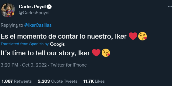 — Iker Casillas (@IkerCasillas) October 9, 2022