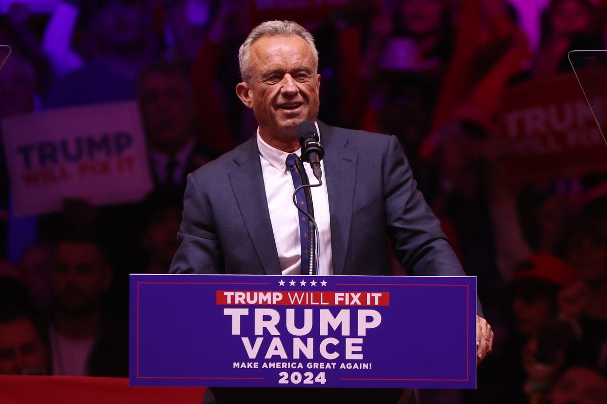 epa11688217 Robert F Kennedy Jr. speaks during a rally held for former US President and Republican presidential candidate Donald Trump, at Madison Square Garden in New York, New York, USA, 27 October 2024. Trump is facing US Vice President and Democratic presidential candidate Kamala Harris in the upcoming election on 05 November 2024. EPA/SARAH YENESEL
