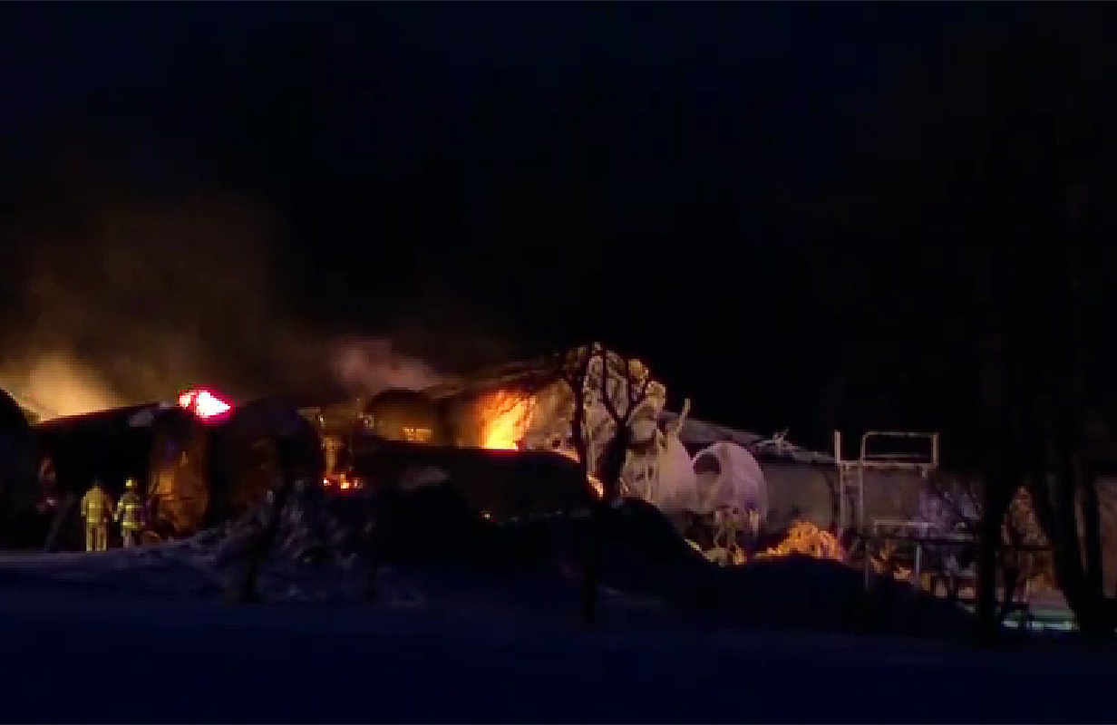 Ένα τρένο που μετέφερε αιθανόλη εκτροχιάστηκε στη Μινεσότα των ΗΠΑ και πολλά βαγόνια τυλίχθηκαν στις φλόγες την Πέμπτη (30/03), αναγκάζοντας τους κατοίκους που βρίσκονται κοντά στο σημείο της συντριβής στο Ρέιμοντ να εκκενώσουν τα σπίτια τους.
