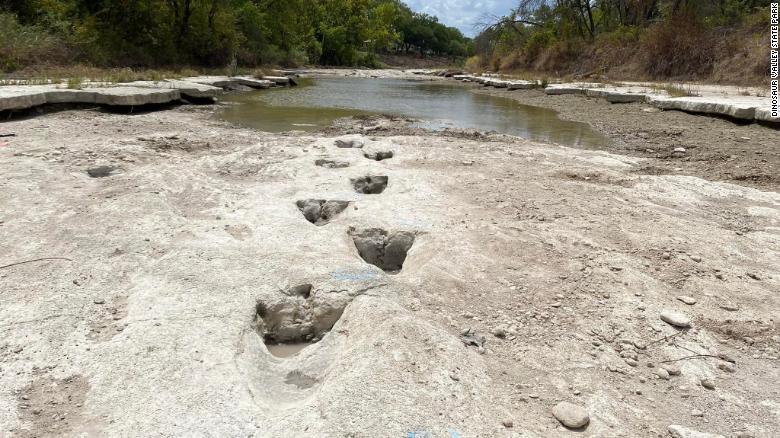 Λόγω της παρατεταμένης ξηρασίας, ίχνη δεινοσαύρων – που χρονολογούνται πριν από 113 εκατομμύρια χρόνια – ήρθαν στο φως σε μια αποξηραμένη κοίτη ποταμού στο Τέξας των Ηνωμένων Πολιτειών, όπως δήλωσε χθες Τρίτη αξιωματούχος της αμερικανικής πολιτείας.