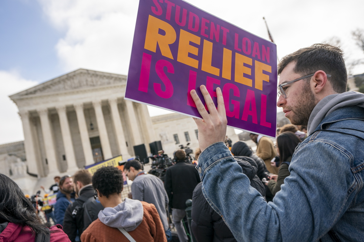epa10495527 Student debt relief activists rally as oral arguments are presented in two cases challenging President Biden's student debt relief program at the Supreme Court in Washington, DC, USA 28 February 2023. Justices will hear arguments in Biden v. Nebraska and Department of Education v. Brown. The hearing challenges the program to reduce student loans that is estimated to cost 400 billion US dollars over 30 years and which the administration says 16 million people were approved for loan relief. EPA/SHAWN THEW