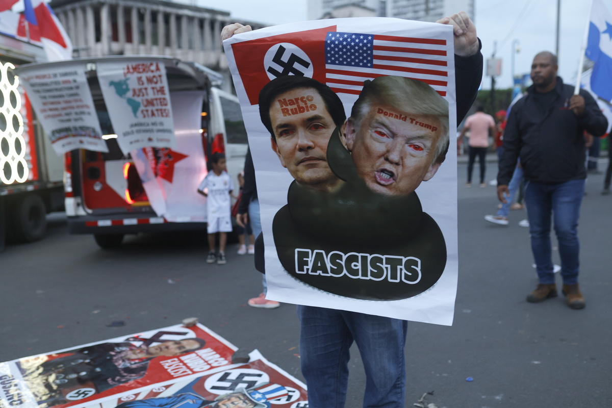 Πολίτες διαμαρτύρονται για την επίσκεψη του υπουργού Εξωτερικών των Ηνωμένων Πολιτειών, Μάρκο Ρούμπιο, στην Πόλη του Παναμά, Παναμάς, 1 Φεβρουαρίου 2025. Ο υπουργός Εξωτερικών των Ηνωμένων Πολιτειών, Μάρκο Ρούμπιο, έφτασε στον Παναμά στο πρώτο του επίσημο ταξίδι στην Κεντρική Αμερική εν μέσω τεταμένου κλίματος λόγω των απειλών του Αμερικανού προέδρου Ντόναλντ Τραμπ να «ανακτήσει» τον έλεγχο του καναλιού. EPA/BIENVENIDO VELASCO
