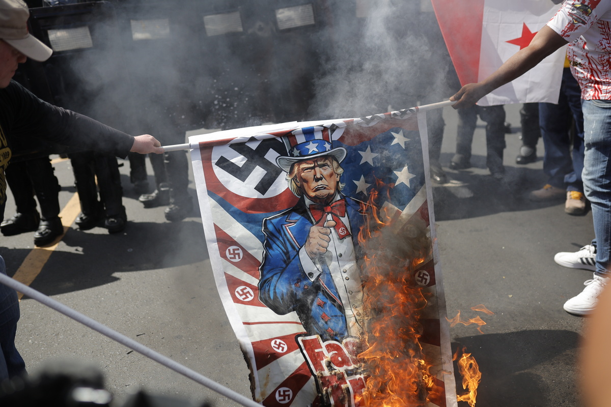 Άνθρωποι καίνε μια αφίσα με την εικόνα του Προέδρου των ΗΠΑ Ντόναλντ Τραμπ κατά τη διάρκεια διαμαρτυρίας ενάντια στην επίσκεψη του υπουργού Εξωτερικών των ΗΠΑ Μάρκο Ρούμπιο στην Πόλη του Παναμά, Παναμάς, 2 Φεβρουαρίου 2025. Ο υπουργός Εξωτερικών των Ηνωμένων Πολιτειών, Μάρκο Ρούμπιο, έφτασε στον Παναμά στο πρώτο του επίσημο ταξίδι στην Κεντρική Αμερική εν μέσω τεταμένου κλίματος λόγω των απειλών του Αμερικανού προέδρου Ντόναλντ Τραμπ να «ανακτήσει» τον έλεγχο του καναλιού. EPA/BIENVENIDO VELASCO