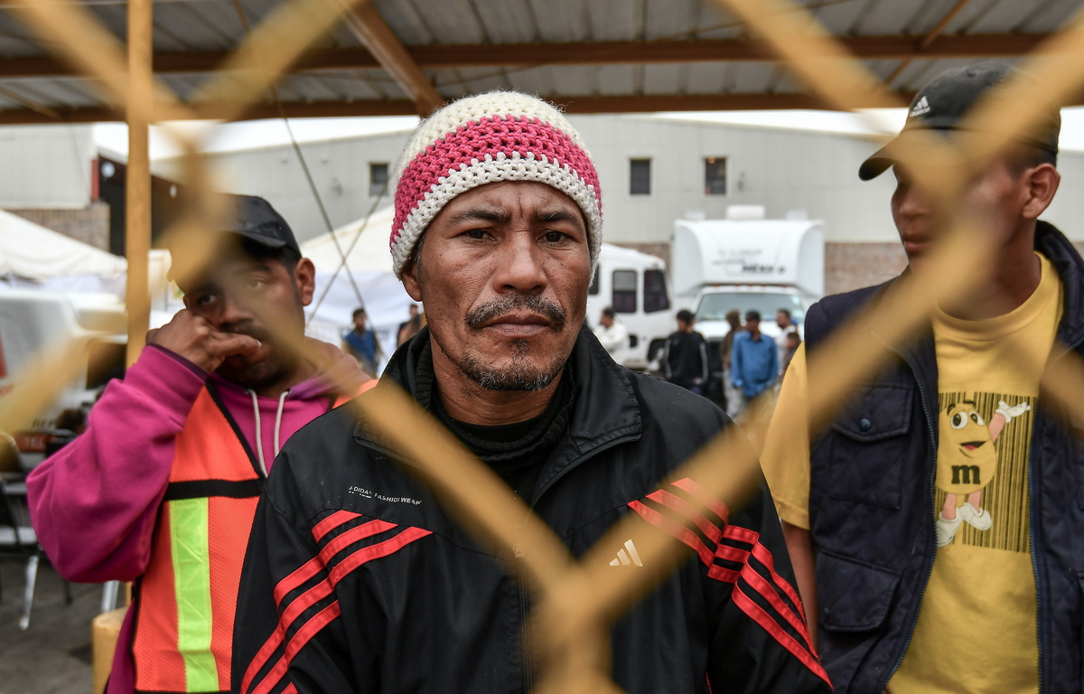 epa07363316 Central American migrants stand in a shelter near the international border line between Mexico and the USA, near the village of Piedras Negras, Mexico, 11 February 2019. Some 1,700 migrants seek to regularize their stay in Mexico with a humanitarian visa from the municipality of Piedras Negras. EPA/MIGUEL SIERRA