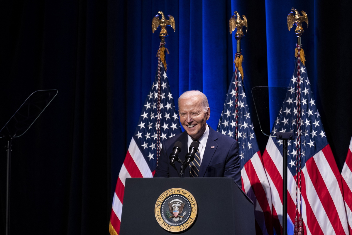 epa11348513 US President Joe Biden speaks at the National Museum of African American History and Culture in Washington, DC, USA, 17 May 2024. Black voters have long been a reliable mainstay of the Democratic Party, but Donald Trump, the former president and current Republican nominee, is garnering 22 percent support from Black voters in battleground states including Georgia. EPA/AL DRAGO / POOL