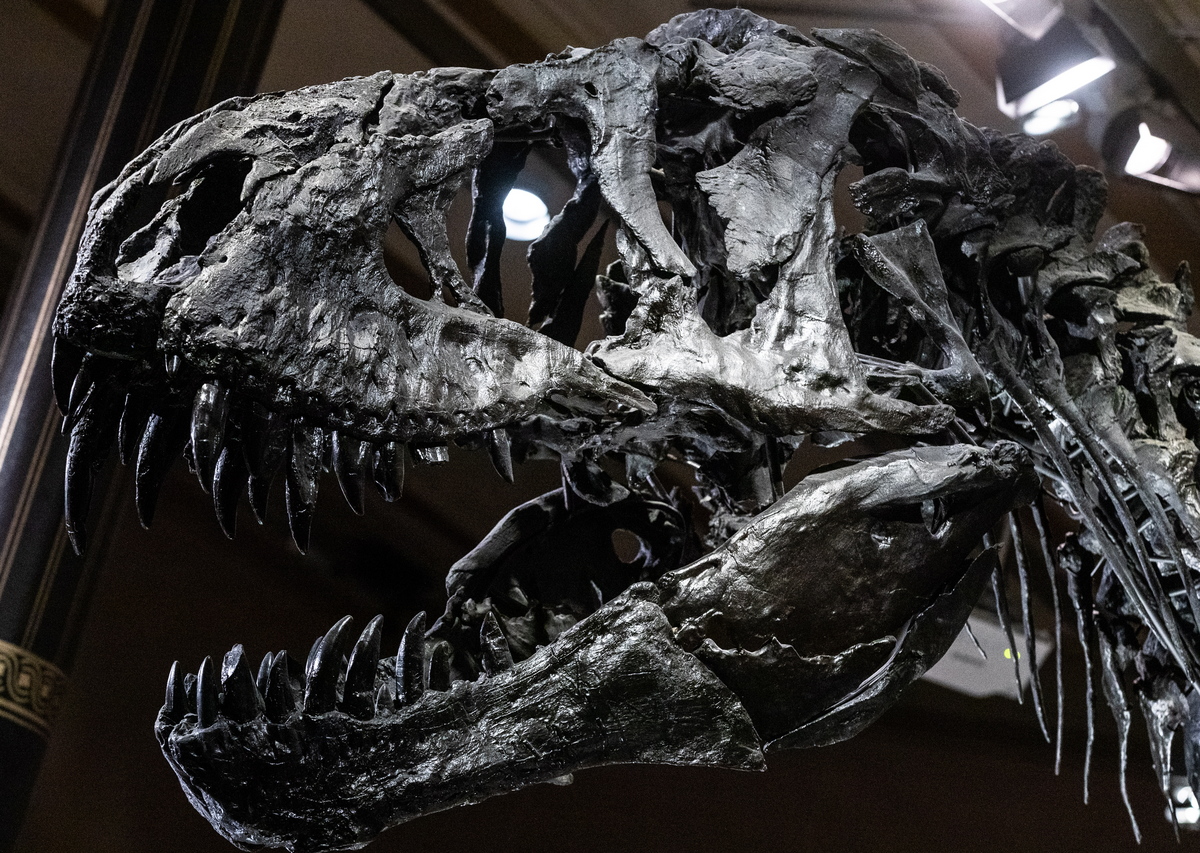 epa08159022 Tristan Otto, a skeleton of a Tyrannosaurus rex, is on display during a press conference at the Natural History Museum Berlin, in Berlin, Germany, 24 January 2020. By the end of January T. Rex 'Tristan Otto' will be lent to the Natural History Museum of Denmark for one year. The disassembly of the twelve meters long and four meters high skeleton will start on 27 January. According to the museum the T. rex skeleton has been visited by some 3 million people since its arrival in Berlin in 2005. EPA/HAYOUNG JEON