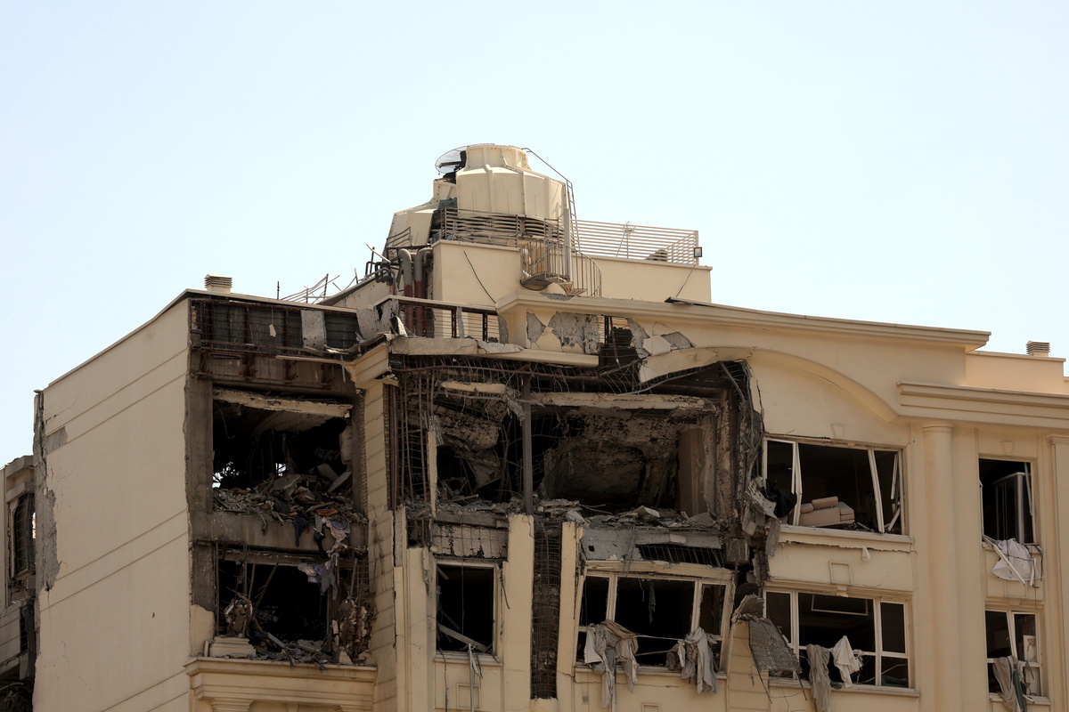 epa12173219 A damaged building that was hit by Israeli air strikes, north of Tehran, Iran, 13 June 2025. Israel launched strikes on Iran and its capital Tehran early 13 June, killing top military figures, including Armed Forces Chiefs of Staff Mohammad Bagheri and Chief Commander of the Islamic Revolutionary Guard Corps (IRGC) Hossein Salami, both countries confirmed. The strikes were part of Operation Rising Lion, Israel's Prime Minister Netanyahu said, adding that Iran's nuclear programme poses a threat to 'Israel's very survival.' EPA/ABEDIN TAHERKENAREH