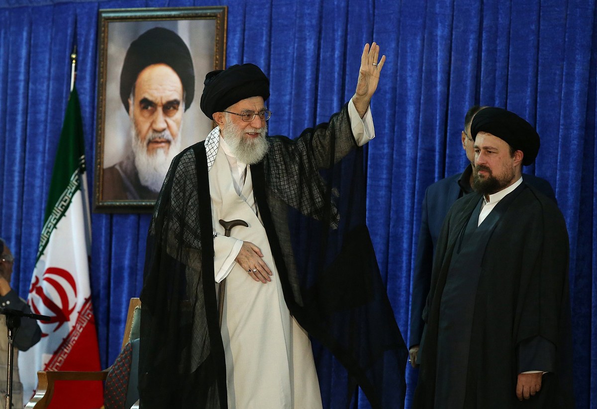 epa06010664 A handout photo made available by the Iranian Supreme Leader's official website shows, Iranian supreme leader Ayatollah Ali Khamenei (L) greeting the crowd during a ceremony to mark the 28rd anniversary of the death of Iranian late supreme leader Grand Ayatollah Ruhollah Khomeini, at the shrine of Khomeini in Tehran, Iran, 04 June 2017. Media outlets report that Khamenei thanked the nation of Iran for participating in the presidential elections and reassured votes that 40 million votes will bring widespread trust for the political system. EPA/IRANIAN SUPREME LEADER WEBSITE / HANDOUT HANDOUT EDITORIAL USE ONLY/NO SALES