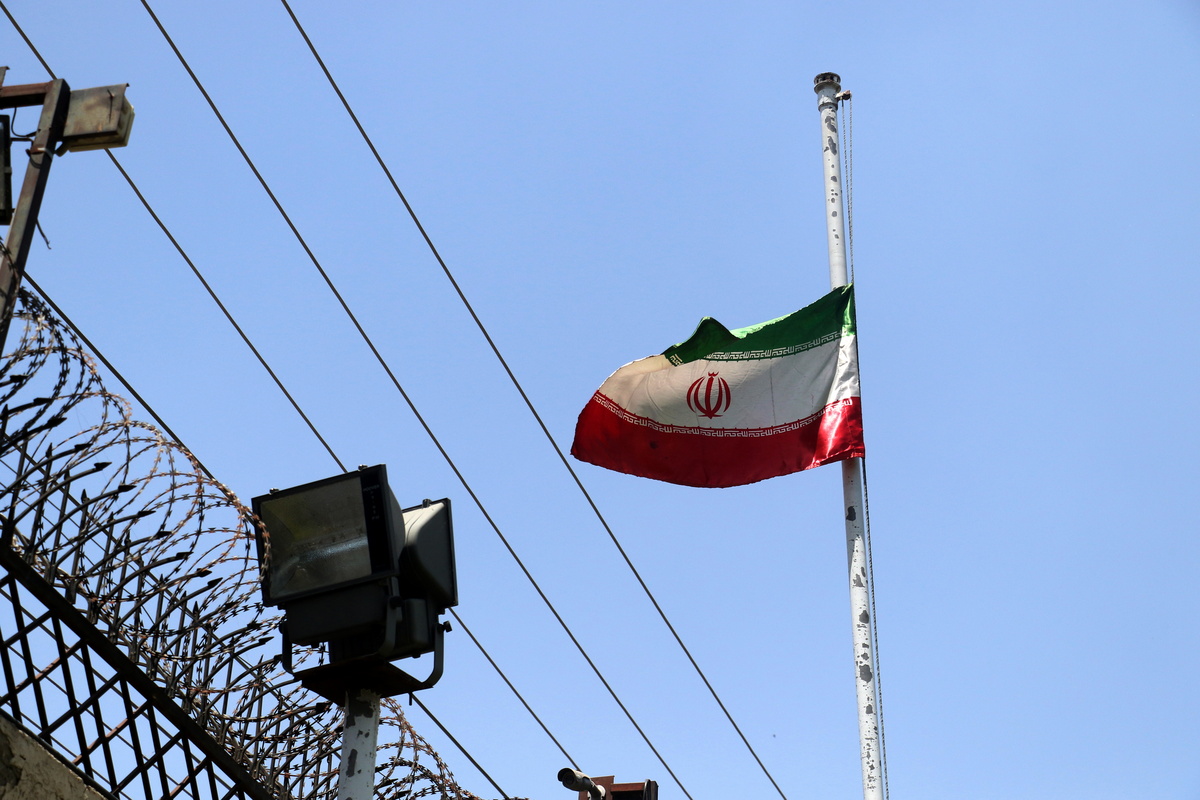 epa11354895 The Iranian national flag flies at half-mast at the Iranian consulate following the deaths of Iran's President Raisi and Foreign Minister Amir-Abdollahian, in Rawalpindi, Pakistan, 20 May 2024. Iran's President Ebrahim Raisi, Foreign Minister Hossein Amir-Abdollahian and several others were killed in a helicopter crash on 19 May 2024, after an official visit in Iran's northwest near the border with Azerbaijan, the Iranian government confirmed. EPA/SOHAIL SHAHZAD