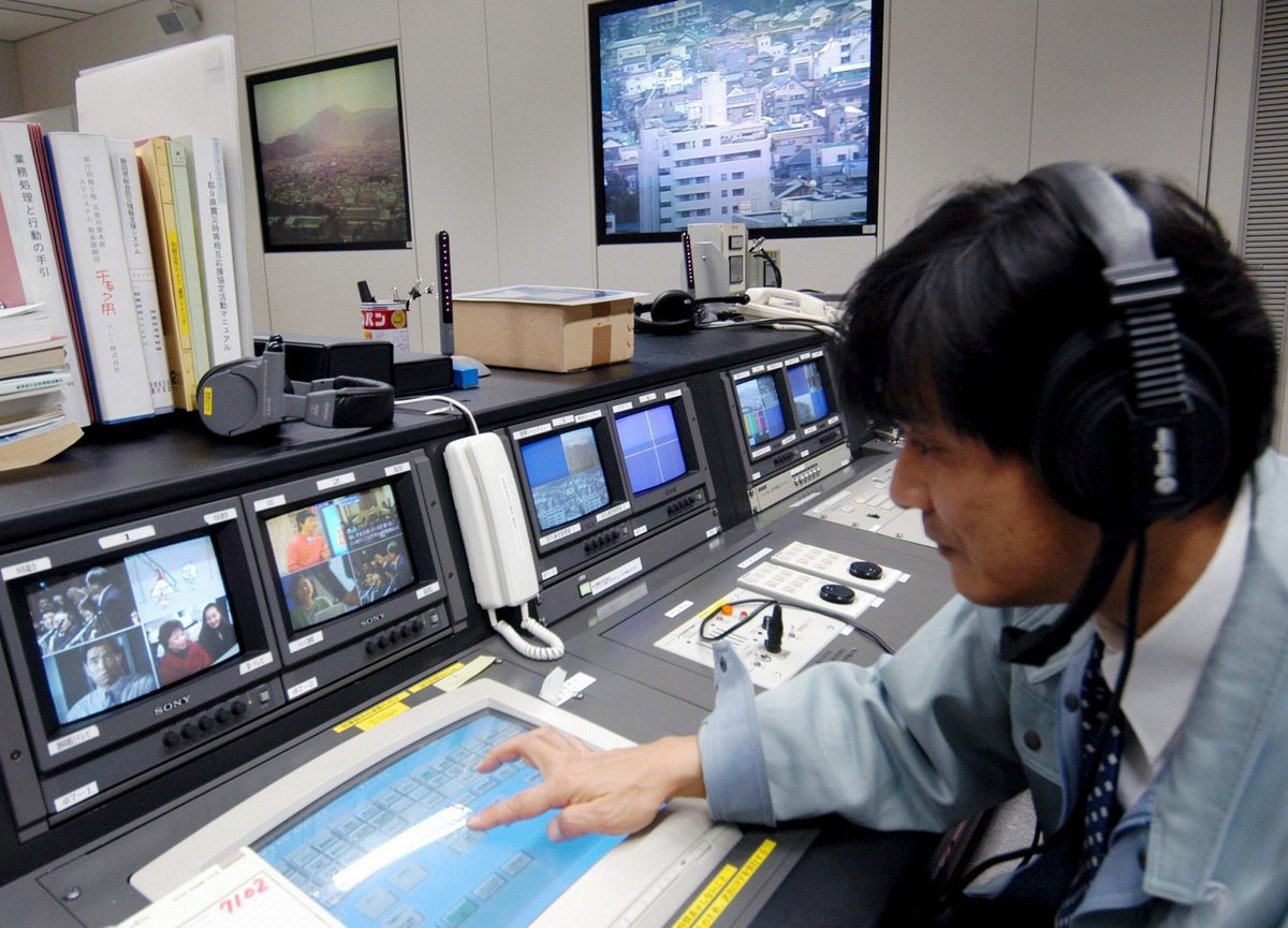 epa000381848 An operator checks monitors at the Disaster Management Headquaters in Shizuoka city, Thursday 03 March 2005. Numazu city on the Pacific coast of Japan is already prepared for an earthquake emergecy situation. The Tokai region and mainly Shizuoka Prefecture is hit by disastrous earthquakes every 100 to 150 years. The last one came in 1854. With 150 years of calm, the region is considered to have accumulated the largest earthquake energy on the Pacific coast of Japan. When the next big Tokai earthquake, a two- to 10-metre-high tsunami is expected to strike Numazu city. Many counter measures have been taken to protect the area from the disaster. EPA/FRANCK ROBICHON STR