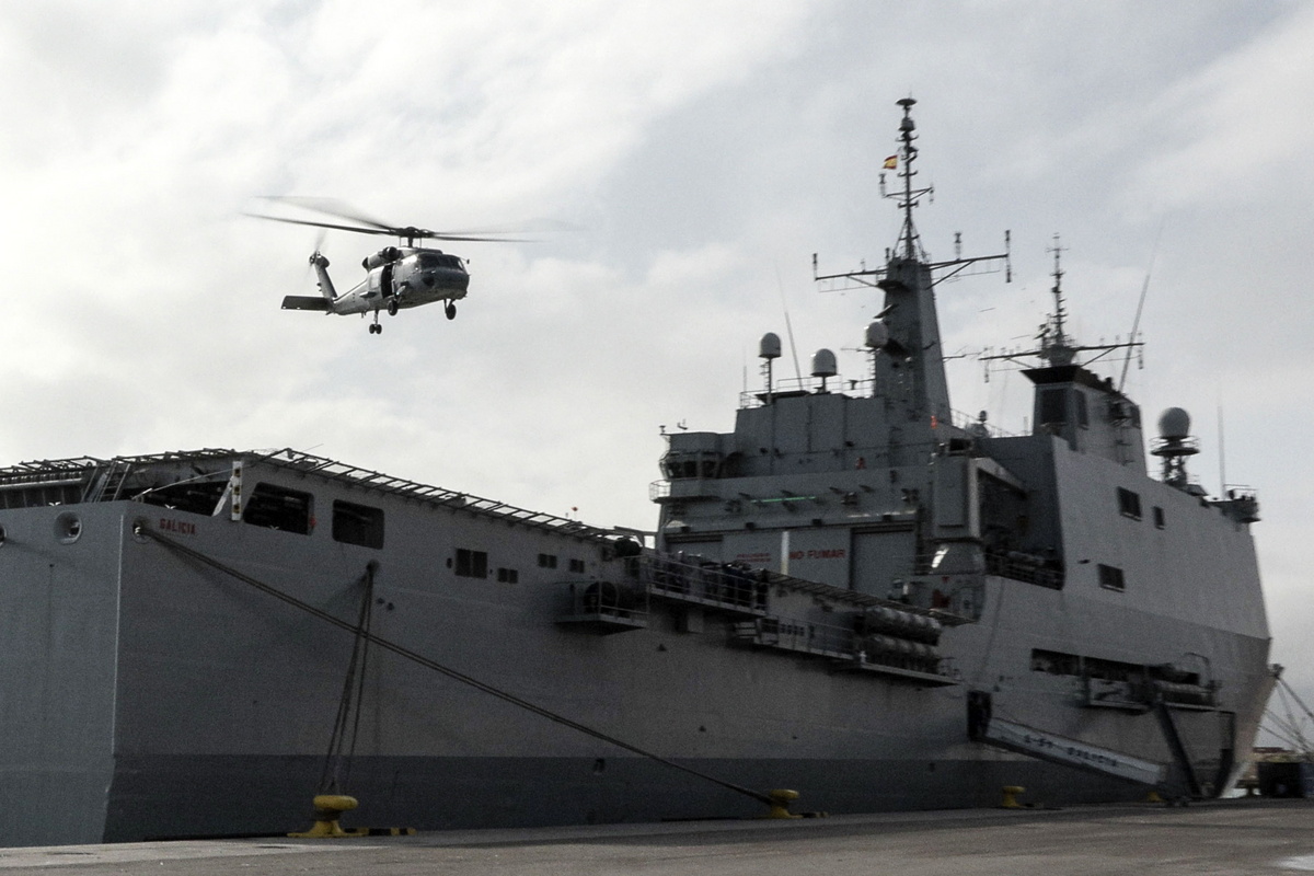 Πολεμικό πλοίο που μεταφέρει 104 στρατιώτες πεζικού του ΠΝ καθώς και φορτηγά με τρόφιμα και νερό πλησιάζει στο λιμάνι της Βαλένθια παρότι θύελλα πλήττει τη Βαρκελώνη περίπου 300 χλμ. στον βορρά.