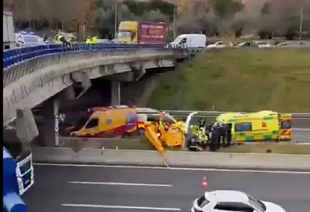 Ελικόπτερο συνετρίβη σήμερα στον Περιφερειακό της Μαδρίτης, χτυπώντας αυτοκίνητο και τραυματίζοντας τρεις ανθρώπους, ανακοίνωσαν οι υπηρεσίες Πρώτων Βοηθειών της ισπανικής πρωτεύουσας.