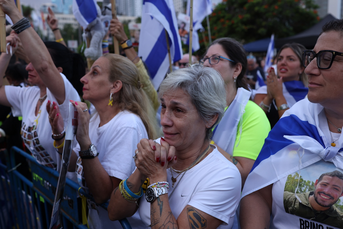 epa12449739 Israelis celebrate prior to the scheduled release of hostages held by Hamas, at Hostage Square in Tel Aviv, Israel, 13 October 2025. As part of the ceasefire agreement between Israel and Hamas, some 20 Israeli captives and around 2,000 Palestinian prisoners are scheduled to be released on 13 October. EPA/STRINGER