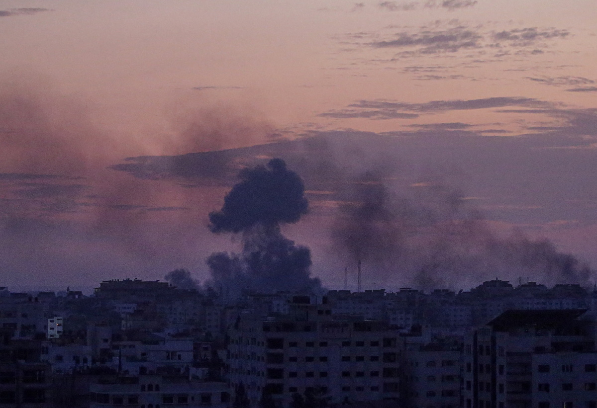 epa10950995 Smoke rises following an Israeli airstrike on Tel al-Hawa neighborhood in Gaza City, 31 October 2023. More than 8,000 Palestinians and at least 1,400 Israelis have been killed, according to the Israel Defense Forces (IDF) and the Palestinian health authority, since Hamas militants launched an attack against Israel from the Gaza Strip on 07 October, and the Israeli operations in Gaza and the West Bank which followed it. EPA/MOHAMMED SABER