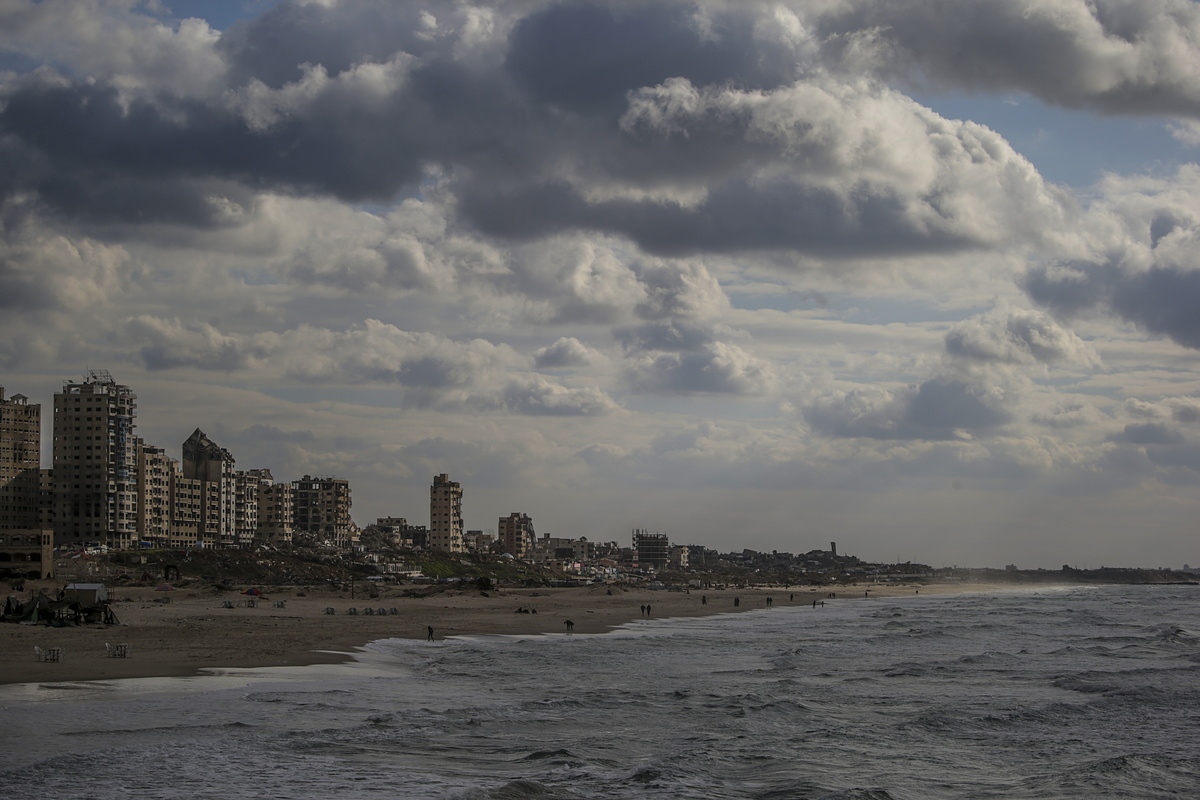 epa11922714 Destroyed buildings are seen in the distance amid a ceasefire between Israel and Hamas, in Gaza City, northern Gaza Strip, 24 February 2025. Israel and Hamas implemented the first phase of a hostage release and ceasefire deal on 19 January 2025. More than 48,000 Palestinians have been killed in the Gaza Strip, according to the Palestinian Ministry of Health, since Israel launched a military campaign in the strip in response to a cross-border attack led by the Palestinian militant group Hamas on 07 October 2023, in which about 1,200 Israelis were killed and more than 250 taken hostage. EPA/MOHAMMED SABER