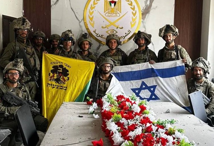 Εικόνες στα μέσα κοινωνικής δικτύωσης δείχνουν Ισραηλινούς στρατιώτες να τοποθετούν την σημαία του Ισραήλ στο έδρανο του προέδρου του κοινοβουλίου, όπως και στρατιώτες να ποζάρουν μπροστά σε τοίχο κάτω από την επιγραφή “Έδρα της στρατονομίας”.