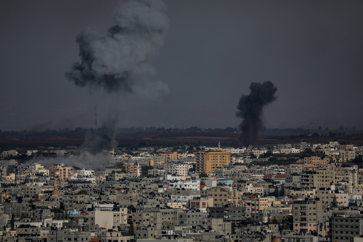 epa10906583 Smoke rises after an Israeli air strike in Gaza City, 07 October 2023. Rocket barrages were launched from the Gaza Strip early 07 October in a surprise attack on Israel claimed by the Islamist movement Hamas. In a televised statement, the Israeli prime minister said the country is at war. EPA/MOHAMMED SABER