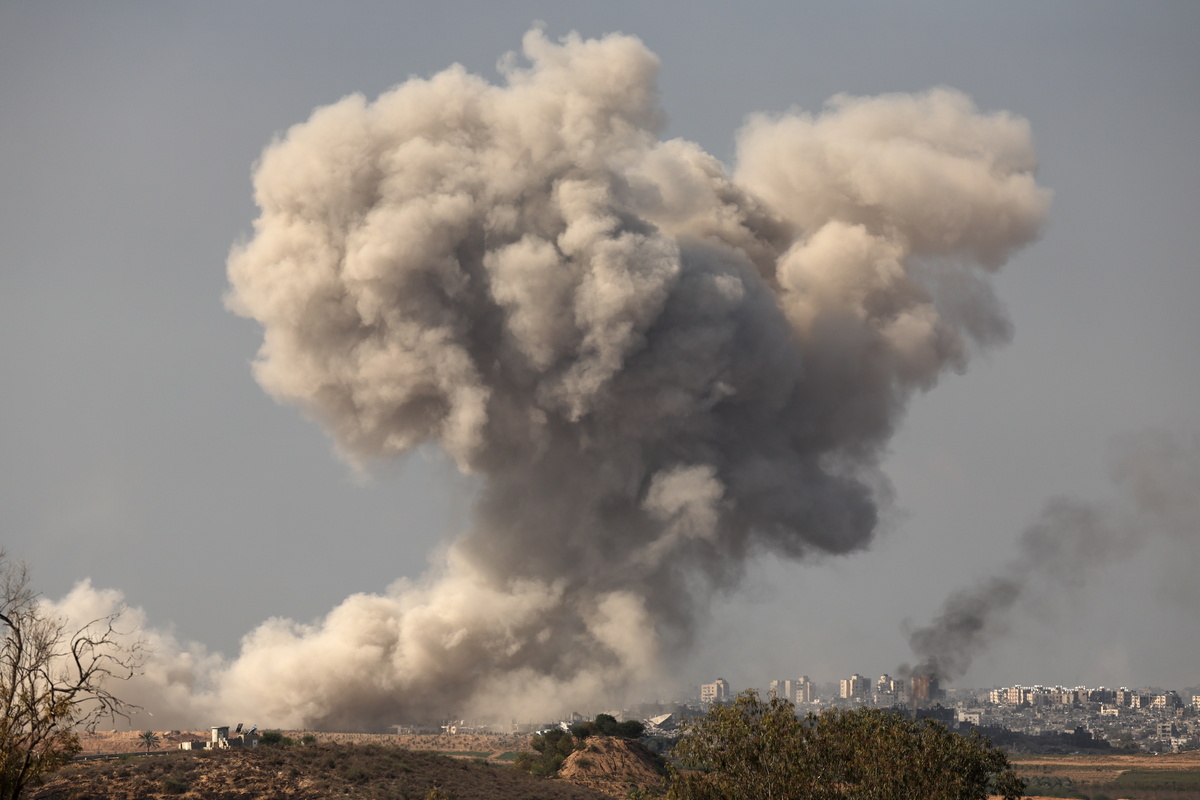 epa10980251 Smoke rises following an Israeli air strike on the city of Beit Hanoun, in the northern Gaza Strip, as seen from the Israeli city of Sderot, southern Israel, 17 November 2023. More than 11,000 Palestinians and at least 1,200 Israelis have been killed, according to the Israel Defense Forces (IDF) and the Palestinian health authority, since Hamas militants launched an attack against Israel from the Gaza Strip on 07 October, and the Israeli operations in Gaza and the West Bank which followed it. EPA/ATEF SAFADI