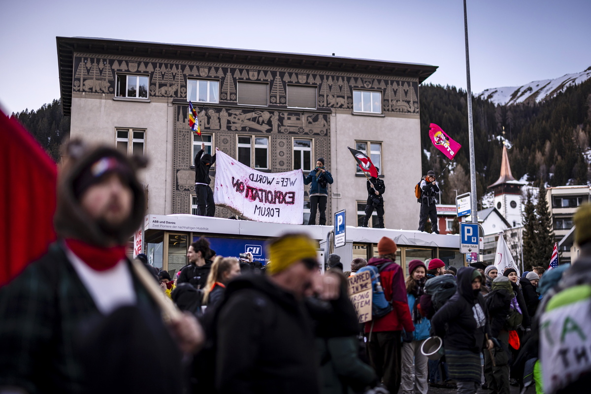 Διαδήλωση πριν από την ετήσια συνεδρίαση του Παγκόσμιου Οικονομικού Φόρουμ (WEF) στο Νταβός της Ελβετίας, 19 Ιανουαρίου 2025. EPA/MICHAEL BUHOLZER