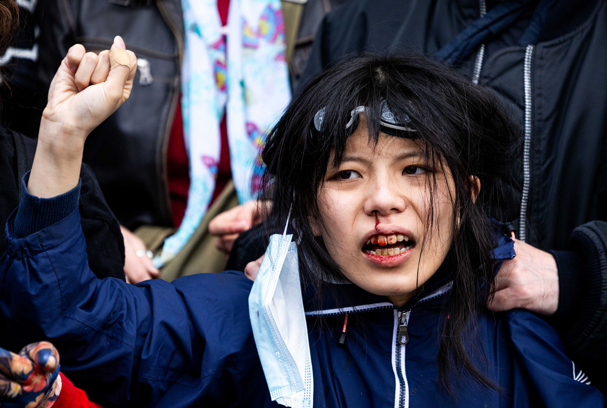 «Διαδηλωτές πέταξαν αμμωνία» σε αστυνομικούς, σύμφωνα με τις δυνάμεις επιβολής της τάξης.