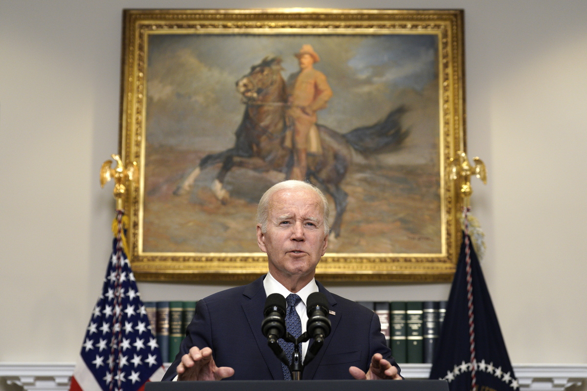 epa10661210 US President Joe Biden delivers remarks after striking a bipartisan deal on the debt ceiling, in the Roosevelt Room of the White House in Washington, DC, USA, 28 May 2023. EPA/Yuri Gripas / POOL