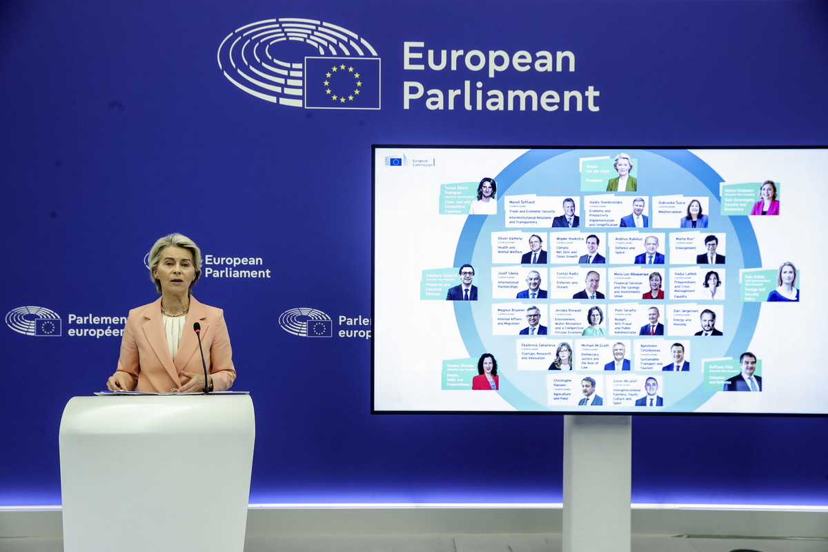 Το νέο Σώμα των Επιτρόπων παρουσίασε σήμερα η Πρόεδρος της Επιτροπής Ούρσουλα φον Ντερ Λάιεν κατά τη διάρκεια συνέντευξης Τύπου που παραχώρησε από το Ευρωπαϊκό Κοινοβούλιο στο Στρασβούργο, λίγο μετά τη συνάντησή της με τη Διάσκεψη των Προέδρων των πολιτικων ομάδων.