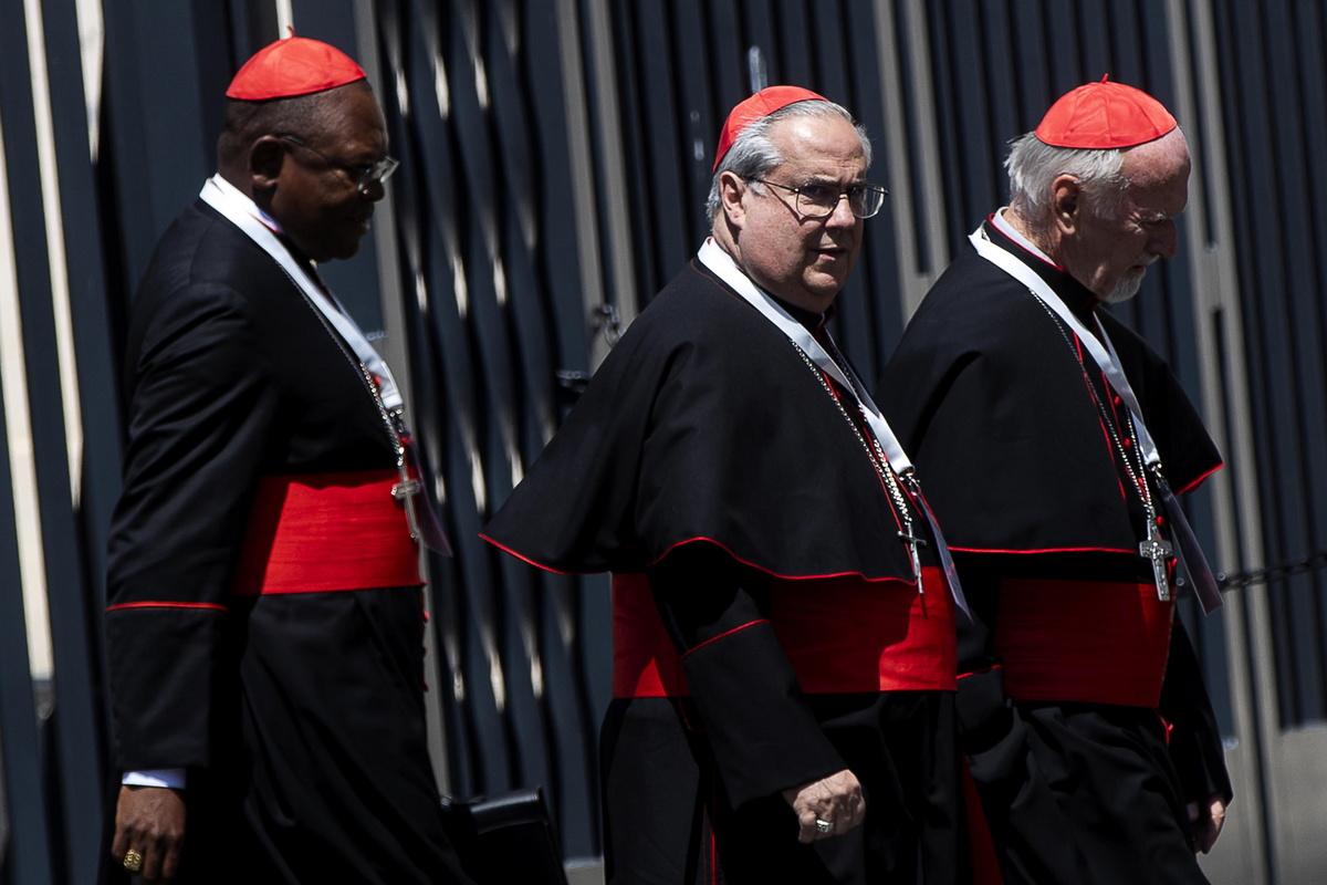 epa12064858 Argentinian cardinal Angel Sixto Rossi (C) leaves for the seventh meeting of the General Congregation of Cardinals, in Vatican City, 30 April 2025. The cardinals continue their deliberations during general congregations held following the death of Pope Francis, in preparation for the assembly to elect a new pope, known as the conclave. EPA/ANGELO CARCONI
