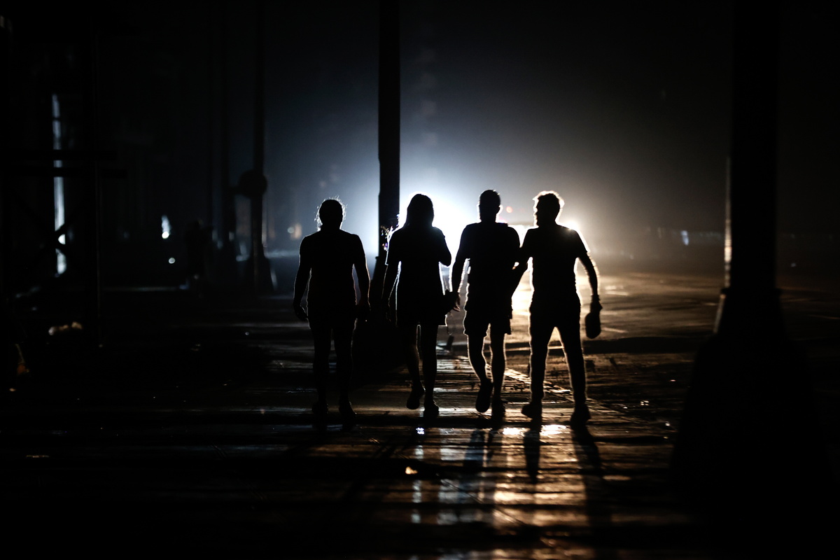 epaselect epa11673371 People walk down a street during a blackout, in Havana, Cuba, 20 October 2024 (issued 21 October 2024). The restoration of electricity in the affected areas of Cuba, including Havana, is in progress, after Cuba's Ministry of Energy and Mines reported on 20 October a third total failure of the National Electric System (SEN) in less than three days. EPA/ERNESTO MASTRASCUSA