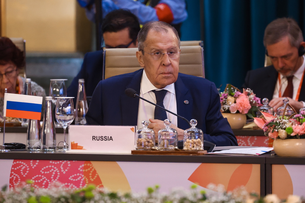 epa10498346 A handout photo made available by Russian Foreign Ministry press service shows Russian Foreign Minister Sergei Lavrov attending the G20 Foreign Ministers Meeting in New Delhi, India, 02 March 2023. The G20 foreign ministers met in New Delhi under India's G20 Presidency. EPA/RUSSIAN FOREIGN MINISTRY PRESS SERVICE / HANDOUT HANDOUT EDITORIAL USE ONLY/NO SALES