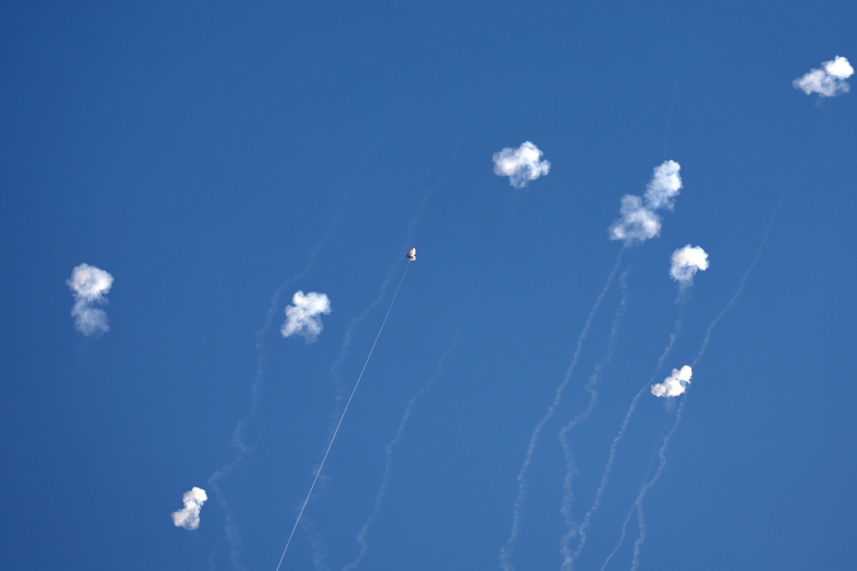epa11626315 The Israeli Iron Dome air defense system intercepts missiles fired from south Lebanon over the upper Galilee, northern Israel, 26 September 2024. The Israeli Army (Tsahal) said on 26 September it concluded an exercise led by the Ground Forces Training Center that took place a few kilometers from the Lebanese border, adding that that over the past day fighter jets struck dozens of Hezbollah targets in Lebanon, including sites, cells, and launchers that were ready to fire toward Israeli territory. EPA/ATEF SAFADI